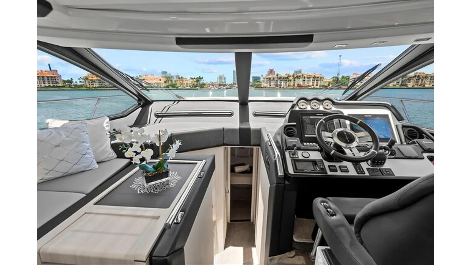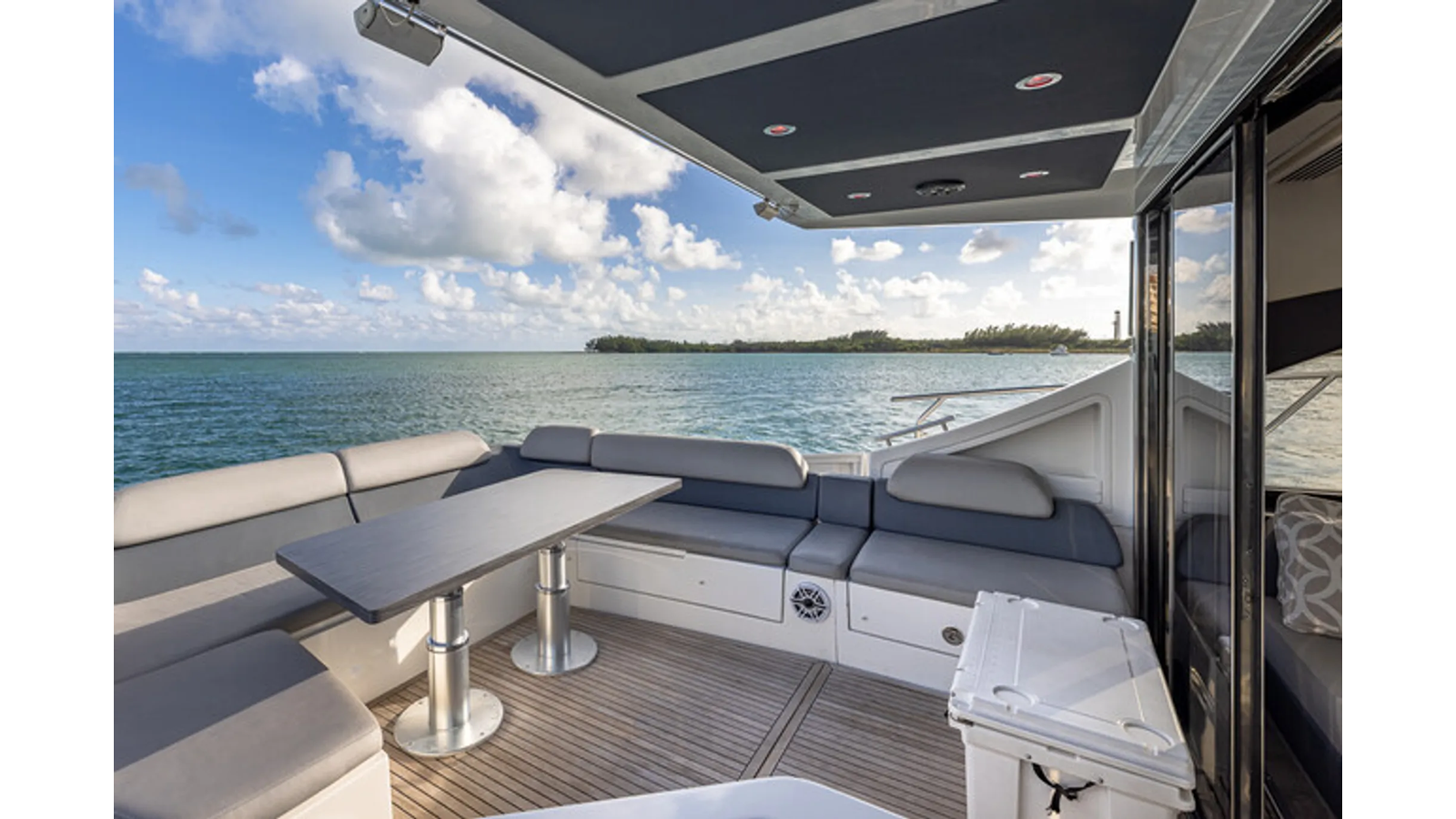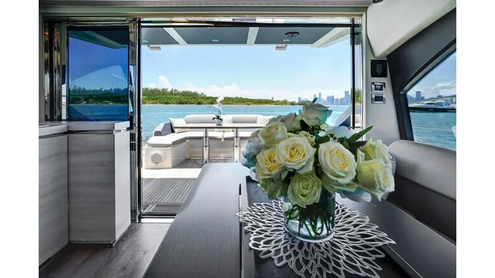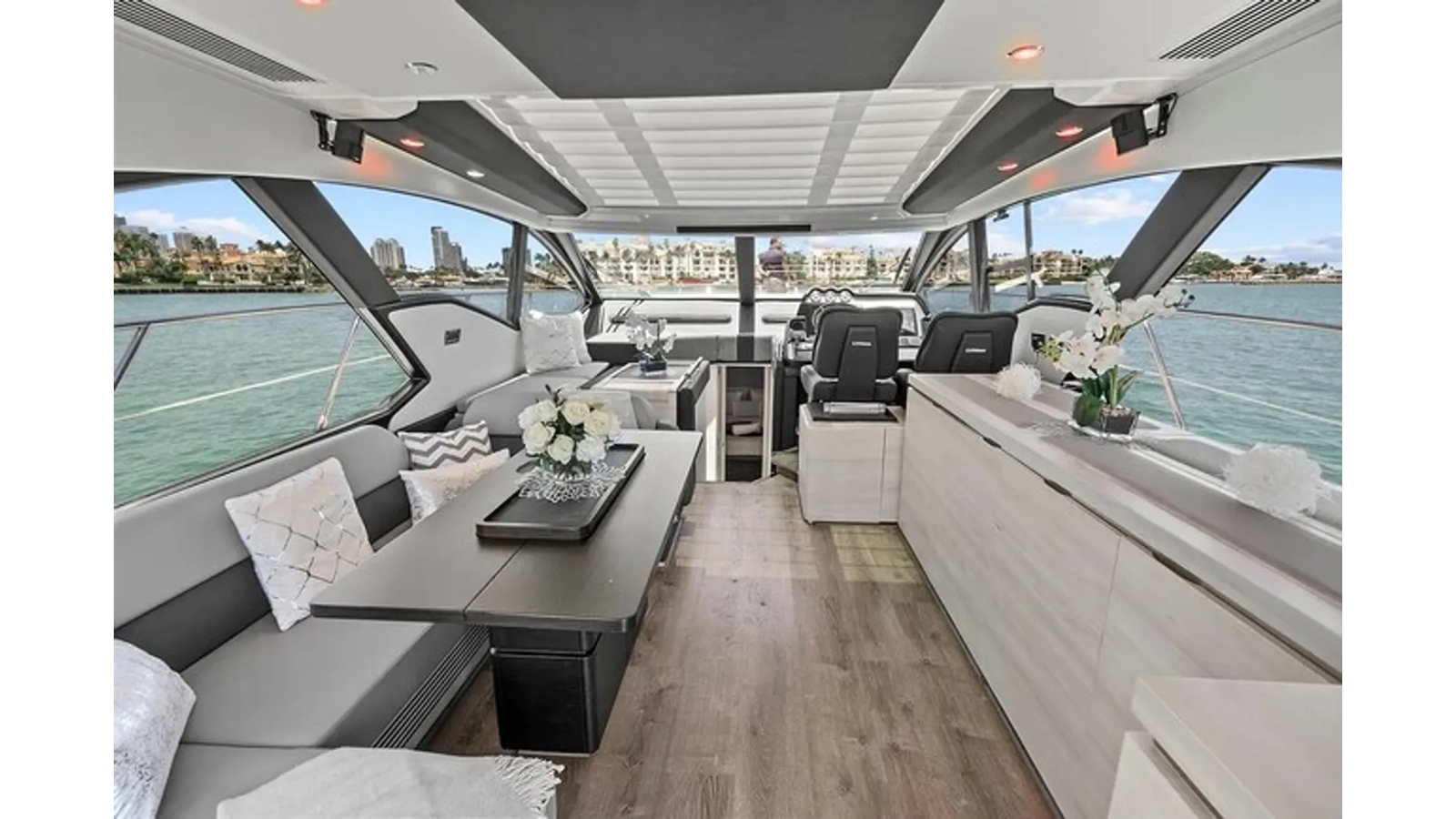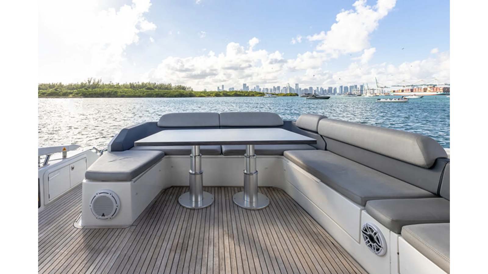 The 2015 Azimut 55S is the epitome of speed and sophistication. Powered by 3 Volvo Penta IPS 600 engines, this vessel delivers the ultimate sporty experience. Lithium is sleek and impressive on the water. Her outdoor living spaces are expansive and include a wet bar, electric grill, and beautiful L-shaped seating area with a modern table. Inside, the main salon is elegant and contemporary. Design features include large panoramic windows, light washed hardwood floors, modern white and grey upholstery and accents, a comfortable seating area with a high and low dining table, main floor galley, and a retractable sunroof. At the bow there is a large and comfortable area for sunbathing. The vessel has three exquisitely appointed staterooms, each offering comfort, privacy, and modern heads. Lithium is both impressive and memorable, reminiscent of a coupé. She is the ideal yacht for a buyer looking for a contemporary and innovative yacht!